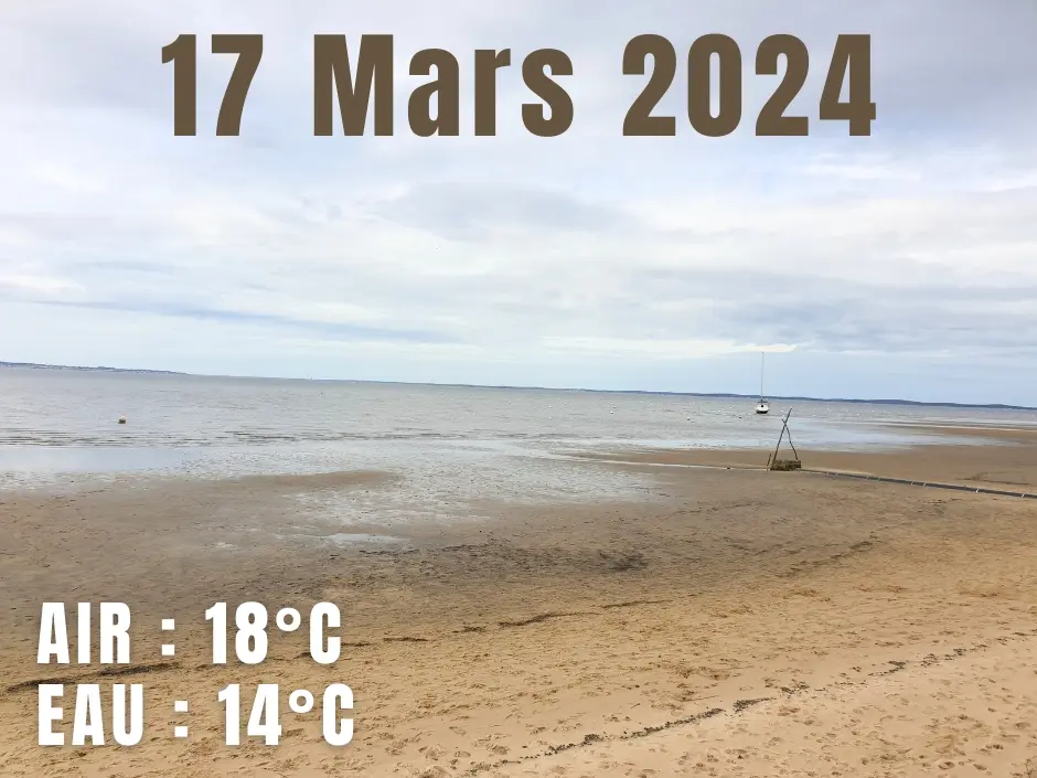 La température de l’eau du Bassin d’Arcachon au niveau d’Andernos (le fond du Bassin) fluctue beaucoup selon la météo. Le sable totalement à nue sur des kilomètres emmagasine la chaleur quand il est au soleil ou le froid quand les températures extérieures sont basses.